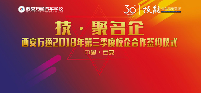 西安萬通汽車學校2018年秋季校企合作簽約儀式將于6月30日盛大舉行,來自陜西省以及其它地區的數十家一站式汽車服務企業、品牌汽車4S店等單位,將于此日與西安萬通簽訂校企合作協議,共同培養汽車后服務市場專業技能人才。