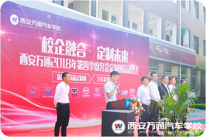 為了適應國家新能源技術發展戰略的宏偉目標,以及為汽車后市場培養更多的創業型人才,2018年9月21日,西安萬通汽車學校隆重舉行了西安萬通2018年第四季度名企定制班啟動儀式,標志著西安萬通“新能源高薪定制班”、“汽車美容創業班”兩個項目正式啟動。