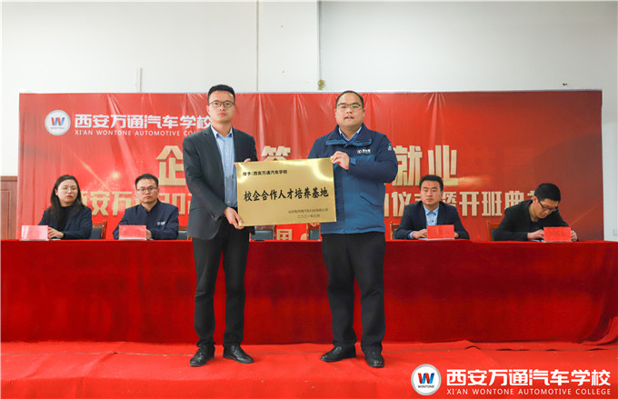 會上,校企雙方互相授牌,校長助理鄭助為北京兔師傅授予“校企合作實習就業基地”牌匾,北京兔師傅人資總監張總為西安萬通汽學校授予“校企合作人才培養基地”牌匾。