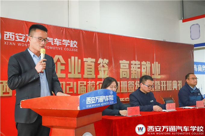 3月26日,西安萬通2021年北京兔師傅校企定向班開班典禮成功舉辦!西安萬通汽車學校校長助理鄭助、學生處張主管、教務處李主管、學生職業規劃中心彭主管以及北京兔師傅人資總監張總、北京兔師傅陜西區域技術培訓總監張總共同出席了此次活動。
