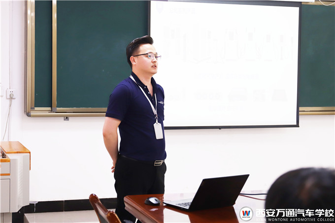 隨后李總在西安萬通汽車學校開展了一場專場招聘宣講會。宣講會上,李總主要從他們的企業文化、企業規模、服務模式、崗位需求、發展前景、薪酬待遇等多個方面,對同學們進行了詳細的講解,并通過與學生互動的形式解答學生心中的疑問。