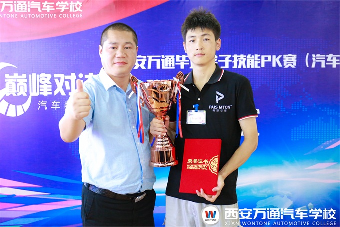 就這樣,許浩寧經朋友推薦來到了西安萬通汽車學校,開啟了汽車技術的學習生涯。許浩寧由于對汽車很有興趣,所以學汽車技術很是投入,掌握的也很迅速。短短兩個月時間已經將所有的汽車美容模塊的技能掌握的差不多了,所以在西安萬通2017年畢業學子技能PK大賽他跟學長們同臺競技,卻獲得了第三名的優秀成績。不過,這竟是一個開端,相信許浩寧未來會越走越遠,越走越成功。