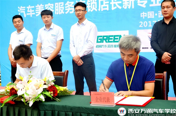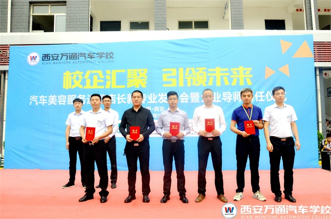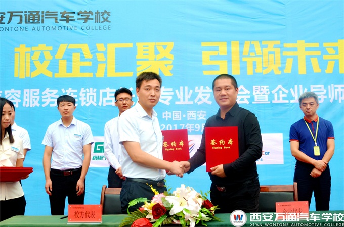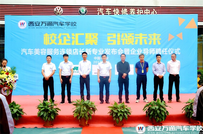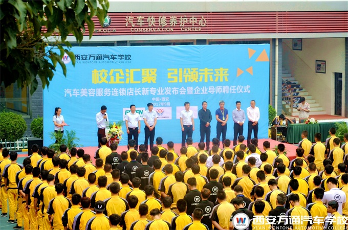 為了深層次落實“校企合作”發展戰略,保證西安萬通學子的高就業質量,2017年9月15日與多家全國型汽車美容服務連鎖企業攜手,構建并發布“汽車美容服務連鎖店長”專業。于此同時,西安萬通還聘任4名行業大咖,擔任汽車美容服務連鎖店長專業的企業導師,共同為筑夢者搭建優質的發展晉升平臺,為汽車美容品牌連鎖機構鑄造行業精英,塑造金牌店長。