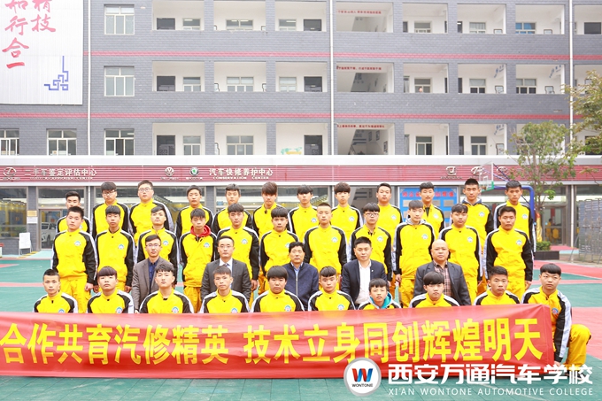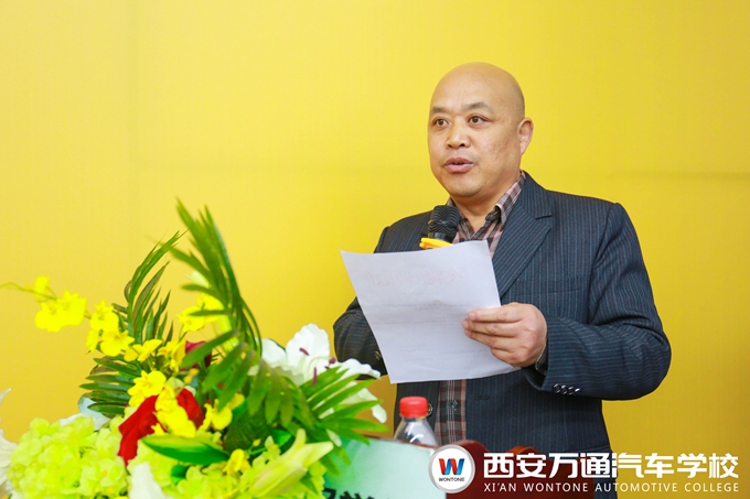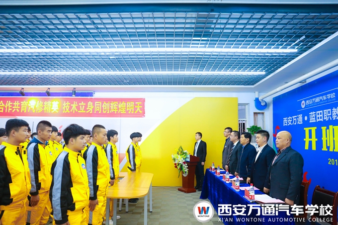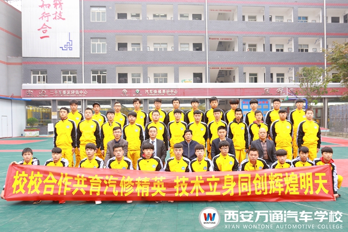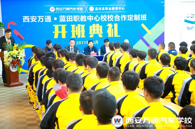 10月16日上午,西安萬通汽車學校與藍田縣職業教育中心第一期校校合作定制班開班儀式在西安萬通汽車健康檢測隆重舉行。出席開班儀式的領導老師有西安萬通汽車學校方校長、戴校長、藍田縣職業教育中心黃主任、西安萬通創就業中心魏主任以及企業代表中鑫之寶汽車服務連鎖宋總經理,開班儀式由西安萬通教務處李主任主持。
