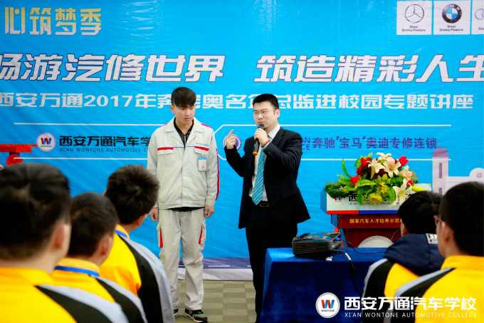 為了幫助西安萬通17屆新同學明晰職業方向,找到奮斗動力,西安萬通汽修學校于2017年2月6日邀請華勝奔馳寶馬奧迪專修連鎖李偉總監親臨我校為新生開展講座。