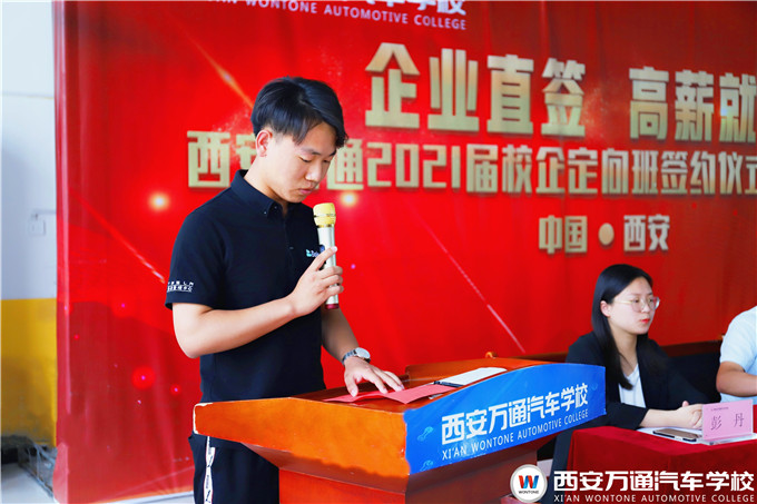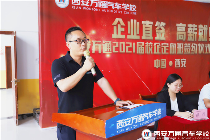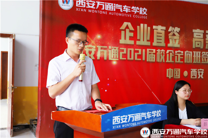 西安萬通鄭助在講話中強調,西安萬通汽車學校注重每一個畢業生的未來發展,將不遺余力地為同學們創造良好的學習實訓條件,鍛煉好進入企業的所需各項必備技能,也希望同學們一定要珍惜時間,查缺補漏,踏實努力強化技能,提升自身職業素養。