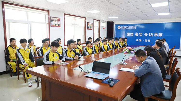 在春光明媚的三月,西安萬通學校迎來了一年一度的就業季學子赴崗就業活動。2024年3月27日,星期三,學校會議室內座無虛席,氣氛熱烈而莊重。新能源2101班的學子們身著整潔的校服,精神抖擻地坐在會場內,與校領導、企業代表共同見證了這一重要的時刻。