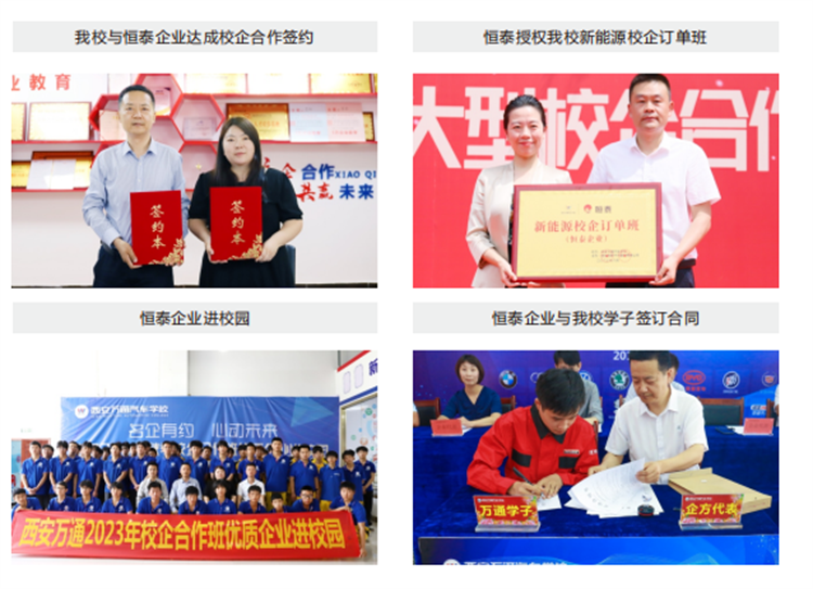 二、校企簽約 助力夢想 活動伊始,西安萬通學校的創就業負責人以及學生班主任李老師親自帶隊,與恒泰特斯拉(西安店)店長劉國治先生一同迎接了前來參加定制班的學子們。此次校企合作不僅是知識與實踐的交匯點,更是雙方共同培養新能源汽車人才、推動行業發展的重要舉措。