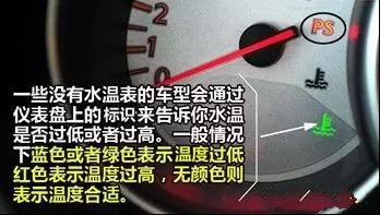 有些車輛沒有配置水溫表,直接用水溫報警燈來做提醒:亮綠色的燈,表示水溫低,亮紅色的燈表示水溫高,具體水溫多么低、多么高,也搞不清楚。廠家說你搞清楚也看不懂,你也分析不出來問題,你直接看顏色就是了。呵呵...