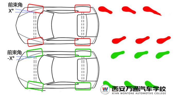 低端車中,大多數只能調整前輪的前束值。從車的正前方看,兩個前輪并不是與正前方路面平行的,而是有一個夾角,就像一個內八字腳,這個夾角就叫做前輪前束,調整的就是這個夾角。有些車型中,后輪也能調整,再高檔一點的車,車輪外傾也能調。除此之外,別的定位數據都是不能調整的,數據不正確的話就需要更換某些零件。
