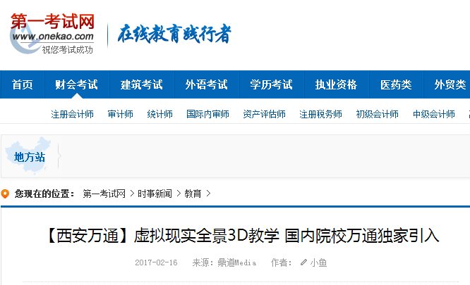 【第一考試網】虛擬現實全景3D教學 國內院校萬通獨家引入