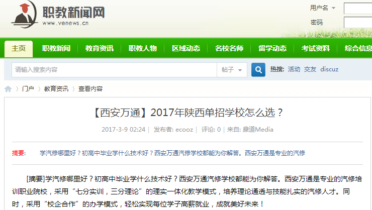 如今,在汽車后市場汽修人才緊缺,學汽修自然是前景廣闊。然而,在擇校時,一定要選擇一所專業的學校,不僅讓自己能學到專業的技能,還要為了讓自己的就業更加有保障。在此,我負責任的向你推薦西北地區汽修院校領頭羊——西安萬通汽車學校,西安萬通憑借高端的品牌實訓設備,先進的實訓工具以及實戰經驗豐富的“雙師型”教師團隊,已經使得數十萬的學子實現“技能+學歷”雙豐收,成功走上工作崗位,有的還實現的創業當老板的夢想。