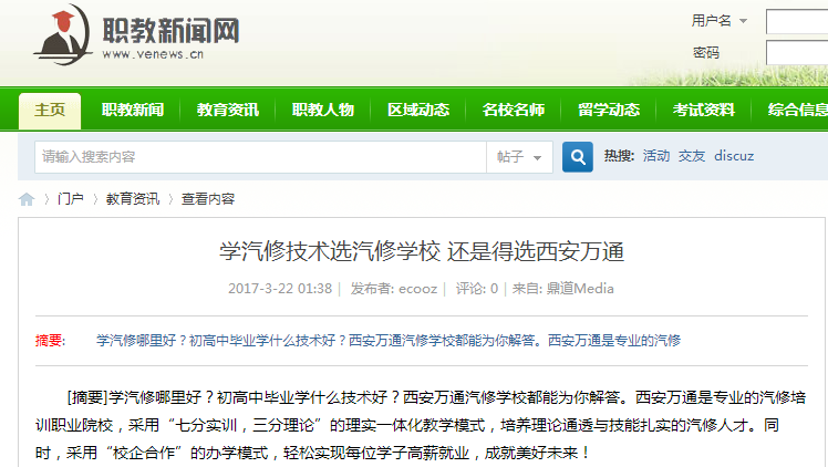 【職教新聞網】學汽修技術選汽修學校 還是得選西安萬通
