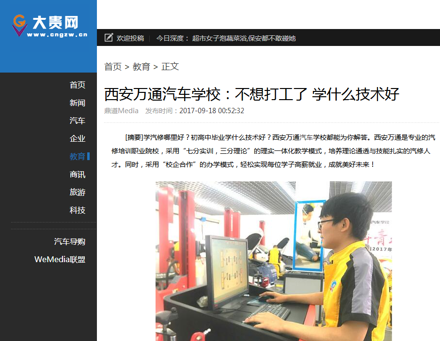 在西安萬通汽車學校,有很多學生曾經就是打工者,因為不想一輩子打工,決定學技術,改變命運,他們在社會最底層摸爬滾打過來,深深地了解到,要想在社會上立足,要么“拼爹”,要么靠自己,選擇正確的方向才能在城里立足,過上幸福生活。他們選擇了最適合轉行者學習,也是最熱門的技術——汽修技術。