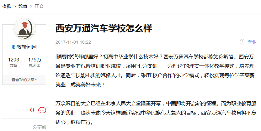 十九大開幕,習近平總書記作報告,在談及教育質量時提出教育要培養更多、更高素質的人才。西安萬通作為專業培養汽車技能型人才院校,深感肩擔職教責任,為全面培育復合型技能人才,學校不斷創新與完善教育體系,并取得了顯著成效。