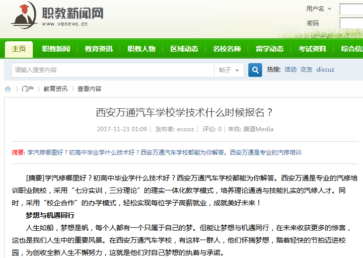 【職教新聞網】西安萬通汽車學校2018年春季報名安排