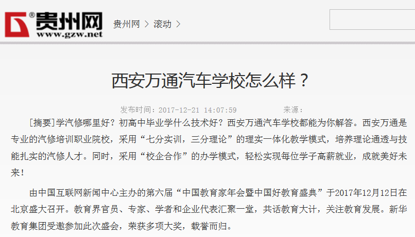 夯實基礎建設,新華教育集團旗下汽車教育品牌——萬通汽車教育在2017年完成全國布局。在西安、南京、安徽等原來11所院校的基礎上,興建開設了沈陽、武漢、重慶、杭州、新疆、呼和浩特、蘭州等萬通院校,實現全國22所院校招生,辦學規模在汽車后市場中占據絕對領先地位。