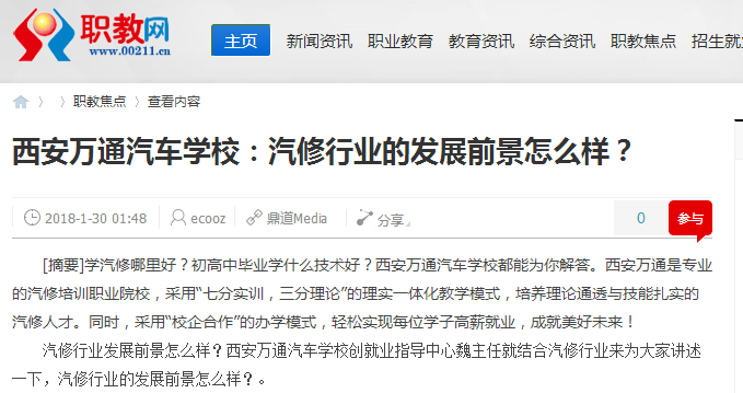 汽修行業發展前景怎么樣?西安萬通汽車學校創就業指導中心魏主任就結合汽修行業來為大家講述一下,汽修行業的發展前景怎么樣?。