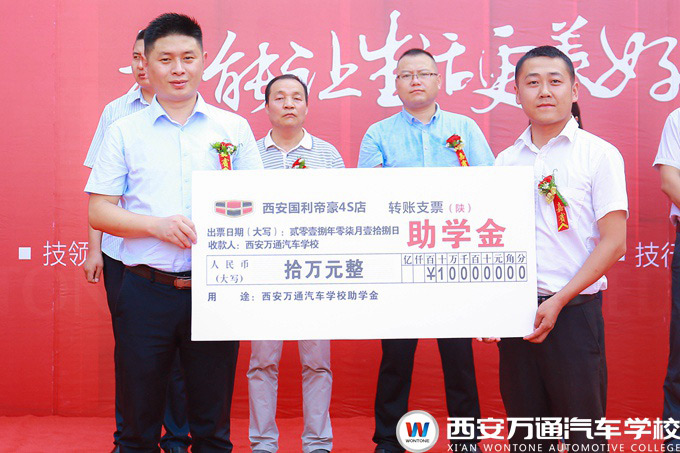 (校企合作企業國利帝豪4S店向西安萬通贈送助學金