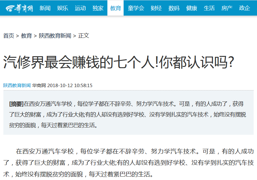 在西安萬通汽車學校,每位學子都在不辭辛勞、努力學汽車技術。可是,有的人成功了,獲得了巨大的財富,成為了行業大佬;有的人卻沒有選到好學校、沒有學到扎實的汽車技術,始終沒有擺脫貧窮的面貌,每天過著緊巴巴的生活。