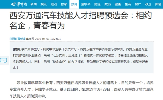 職業教育就是就業教育,西安萬通在培養職業技能人才的道路上,目的只有一個,培養專業汽修人才,保障學子就業;诖四康模2019年3月29日,西安萬通舉辦了第六屆汽車技能人才招聘預選會。