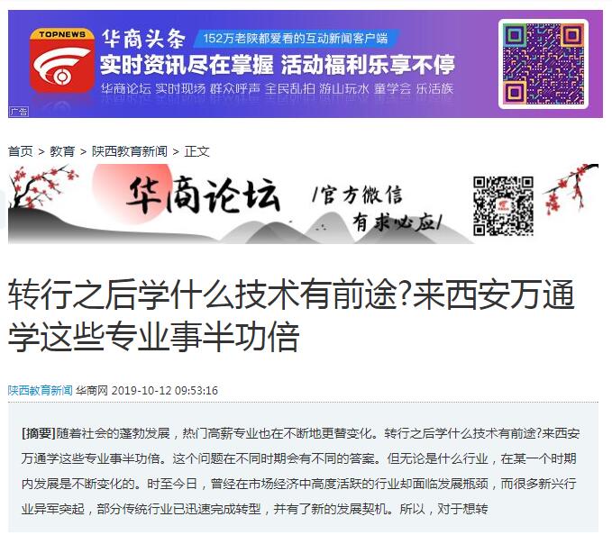 【華商網】轉行之后學什么技術有前途?來西安萬通學這些專業事半