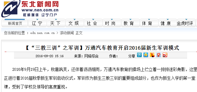 【東北新聞網】西安萬通開啟2016屆新生軍訓模式