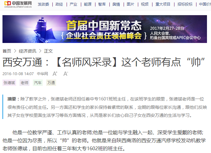 除了教學之外,張德斌老師還擔任著三年制大專1602班班主任,在該班學生的眼里,張德斌老師是一位很有責任心的班主任。平常的班級管理中,張德斌一方面是與自己的學生和諧地融入在一起,鼓勵他們珍惜年少時光好好學習,幫助他們培養樂觀心態堅持理想;另一方面還和學生的家長保持著緊密的聯系,定期的跟每位家長溝通,跟他們反映其子女在學校里面生活學習等各方面情況,從而是家長們放心自己子女在西安萬通的生活與學習。