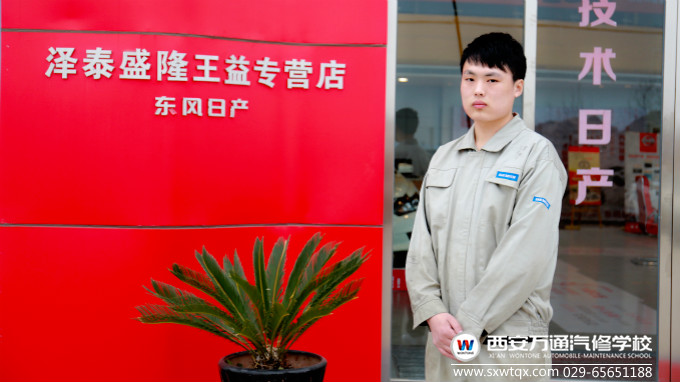 在2016年西安萬通汽修學校大型招聘會上,霍樂凱看中了銅川市王益區的東風日產4S店,隨后便到這家4S店里就職;魳穭P適應能力很強,很快便從學生的角色轉變成企業員工的身份,這肯定與他在學校里學得的專業技能知識分不開的,F在,霍樂凱已經成為車企配件的主管了,可謂是小有成就,不過霍樂凱的腳步還不止于此,他還有更高的追求。