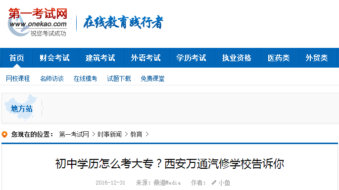 【中國第一考試網】初中學歷怎么考大專?西安萬通汽修學校告訴你