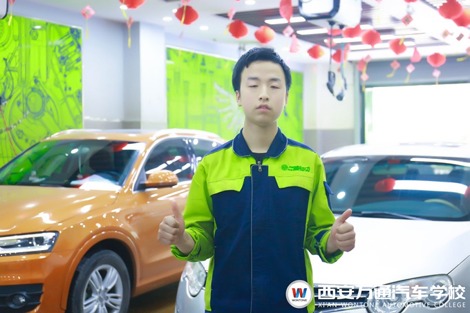 胡國斌有不少同學畢業后都去,于是他就向同學詢問了他們各自的學校情況,并讓同學通過QQ傳了一些學校的實訓設備及學校環境等照片。通過對比,胡國斌看到西安萬通汽車學校比別的學校在各方面都要好許多,于是胡國斌就選擇了西安萬通汽車學校的汽車維修工程師專業,開啟了他的汽修之旅。