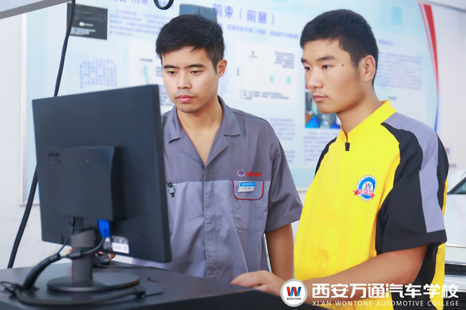 段勇杰還說到說:“決定學習汽修技術之后,我就開始考慮學校的問題。我是陜西咸陽人,我們那邊有幾所比較有名的技術學校,我都參觀考察了一番。但是去了之后我發現學校要么設備比較陳舊,要么專業設置也比較繁雜,學生過多,老師無法顧及到每一個人。后來有人推薦我來西安萬通看一看。萬通只做汽車教育,專業設置非常精準全面。來校參觀后,學校的實訓課首先就吸引了我,我看到老師帶領學生親手動手操作,每個同學都可以接觸到先進的汽車設備,學汽修就是應該動手操作,這樣才能學到真技術,最終我決定選擇西安萬通。”