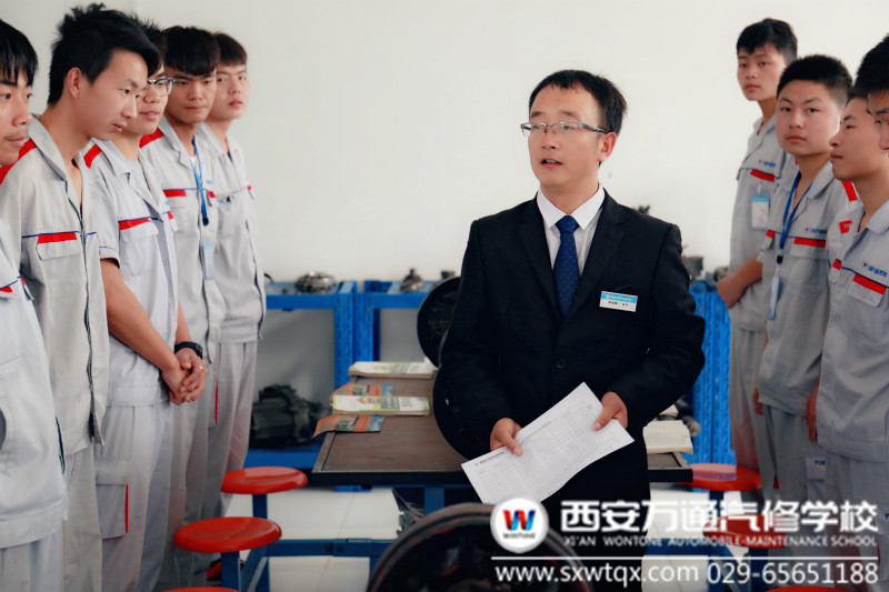 第一次見尉曉彥老師,他身著工裝,談吐得當,戴著一副眼睛,似有一份儒雅姿態。尉曉彥老師是甘肅天水人,在西安萬通汽修學校不僅承擔著6個班的素質教育課程,還是大專1602班、1603班以及中專1507班的班主任,他的工作任務不可謂不重,但尉曉彥老師卻不辭辛苦擔起重責,一邊教學,一邊授課。