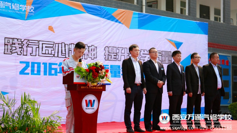 為進一步完善教學管理,狠抓教學質量,深化教學改革,提升教學品質,創建優良的教風、學風和校風,2016年10月20日上午,西安萬通汽修學校舉行了西安萬通2016年教學質量季啟動儀式。校區張鄭主任、市場部魏新白主任、學生處閆震主任、教務處李剛主任以及教務處王鵬主管出席此次教學質量季啟動儀式。