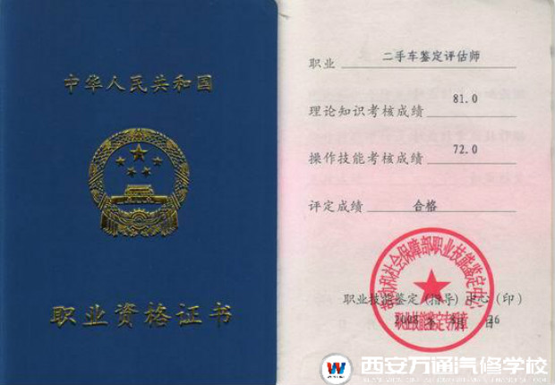 對于從事二手車評估與交易的工作人員來說,《二手車鑒定評估師》職業資格證無疑為就業增加砝碼,但也是有選擇性的考取證書,選對了無疑會成為求職者成功就業的重要保障。在西安萬通汽修學校,針對學生畢業后的發展方向,為學生量身定制了汽車維修電工、汽車美容裝飾工、二手車鑒定評估師等幾種行之有效的證書,讓學生們將來更容易的進入行業走上崗位。