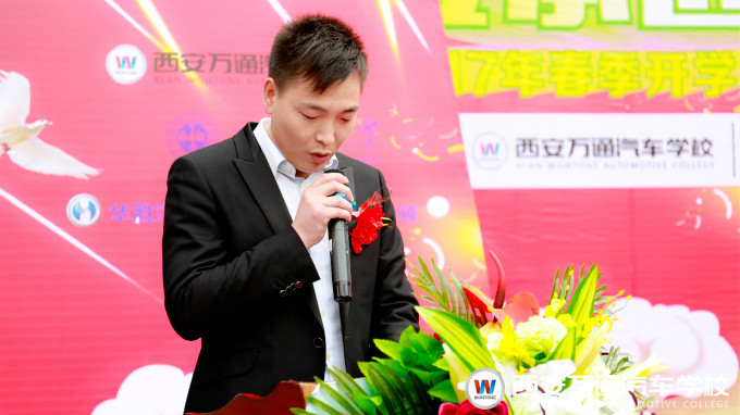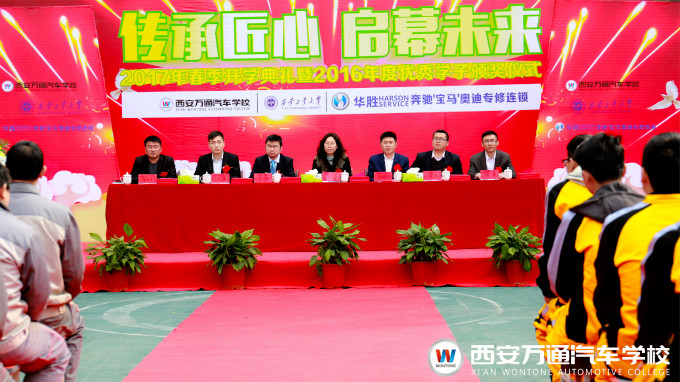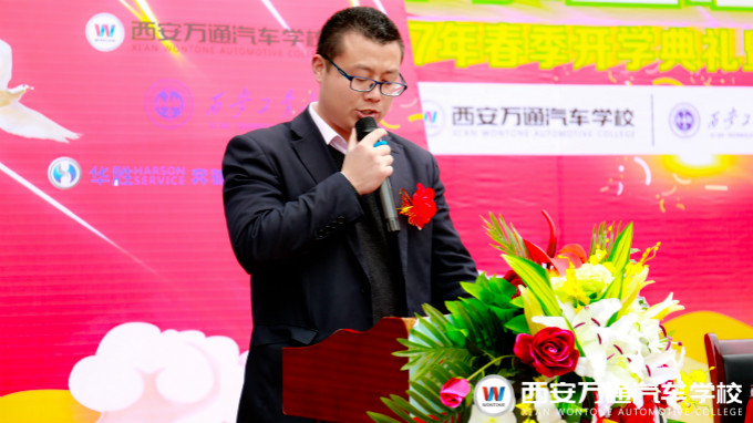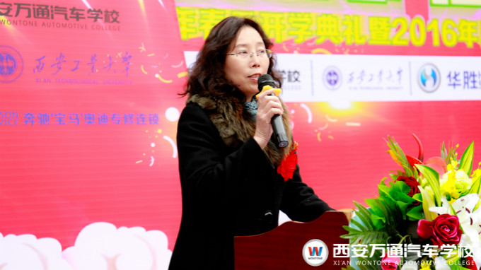典禮中有西安萬通汽車學校方宏剛校長、西安工業大學成教院石寶麗院長、華勝奔寶奧專修陜西區域總監李偉、西安萬通校區閆震主任、教務處李剛主任等領導出席。