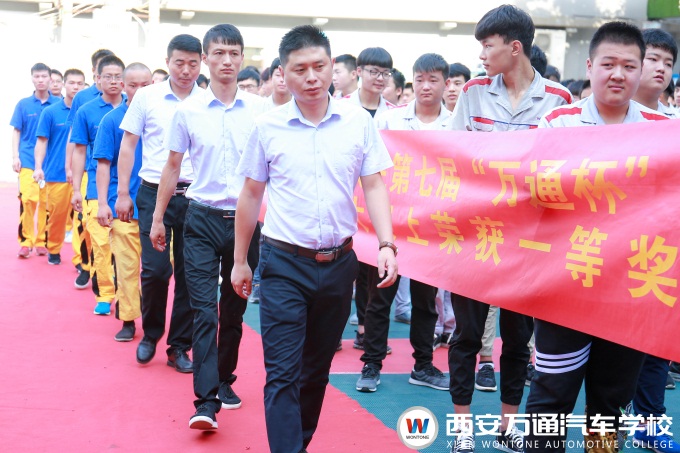 經歷披荊斬棘,終得壯士歸來。2017年7月10日,西安萬通汽車學校隆重舉行了2017第七屆“萬通杯”全國汽車維修技能大賽西安萬通代表隊征戰凱旋歡迎儀式,全校師生列隊操場,為代表學校外出征戰并獲得優秀成績的領隊老師與學子們表示祝賀與歡迎。