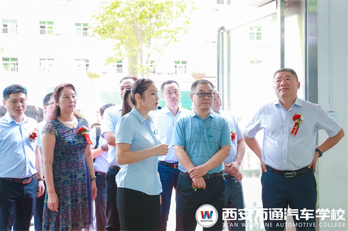 在品牌發布會圓滿結束之后,高處長、陶總經理、石副院長以及各位企業嘉賓在方校長等校領導的陪同下,對西安萬通的實訓課堂進行了參觀。一行領導先后先后參觀了雙人快保、大燈翻新、汽車診斷、車身改色、車身鍍金等教學現場,看到學子們積極參與實訓,老師們耐心細致輔導,領導嘉賓們對此稱贊不已。