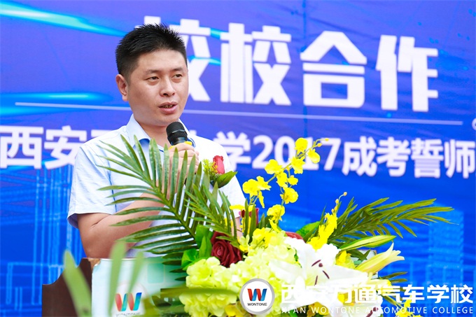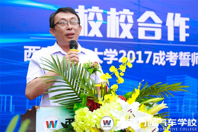 接下來,到了激動人心的時刻,通過西安萬通全體師生的努力,西安萬通在教學上不斷提升,作為西安工業大學的教育站點,西安工業大學特授予西安萬通“優秀教學示范基地”榮譽,以肯定西安萬通在站點教學的滿意工作。由此,西安萬通成為全國第二家獲得“優秀教學示范基地”職業類院校。而且,洪波院長也向2017年參加學籍注冊考試的學子們致以慰問與鼓勵,對西安工業大學與西安萬通之間的合作以及學生的教育培養滿懷信心。