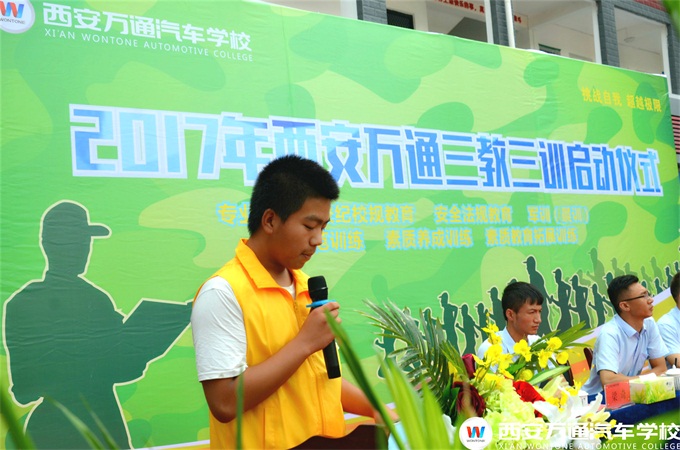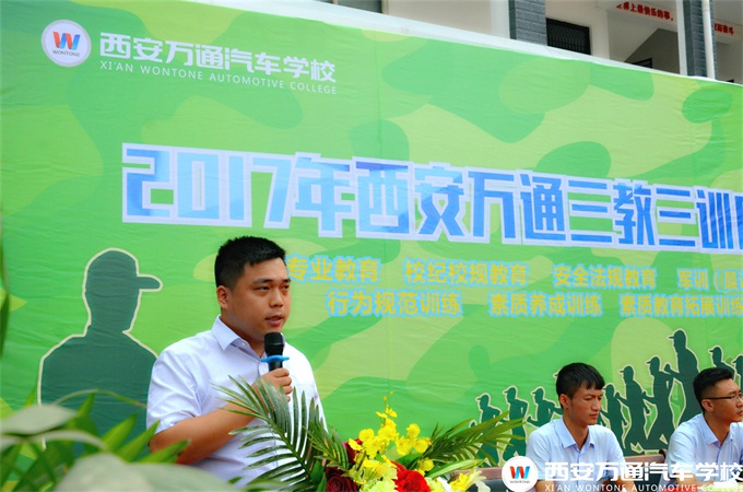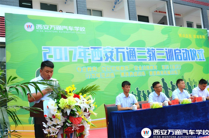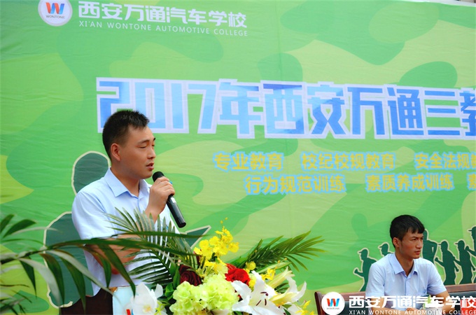 西安萬通教務處李剛主任講到,軍訓是西安萬通汽修學校新生進入校園接受的第一課,是對新入校學生教育管理工作的重要組成部分,也是學校“三教三訓”教學理念的重要體現。做好新生入學教育工作,幫助新生盡快了解學校學習、生活環境,引導他們完成角色轉變,合理規劃學校生活,明確學習目的,增強學習動力,為創建優良校風和學風奠定基礎。