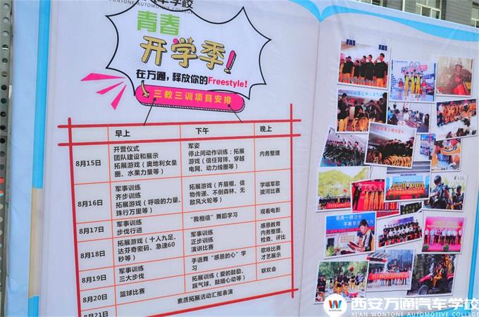 為提高學生的思想素質,培養學生吃苦耐勞、團結拼搏的精神,增強學生的集體意識、紀律意識,西安萬通汽車學校2017級新同學們迎來了入學后的第二堂課——“三教三訓”系列活動,并于8月15日上午正式啟動。