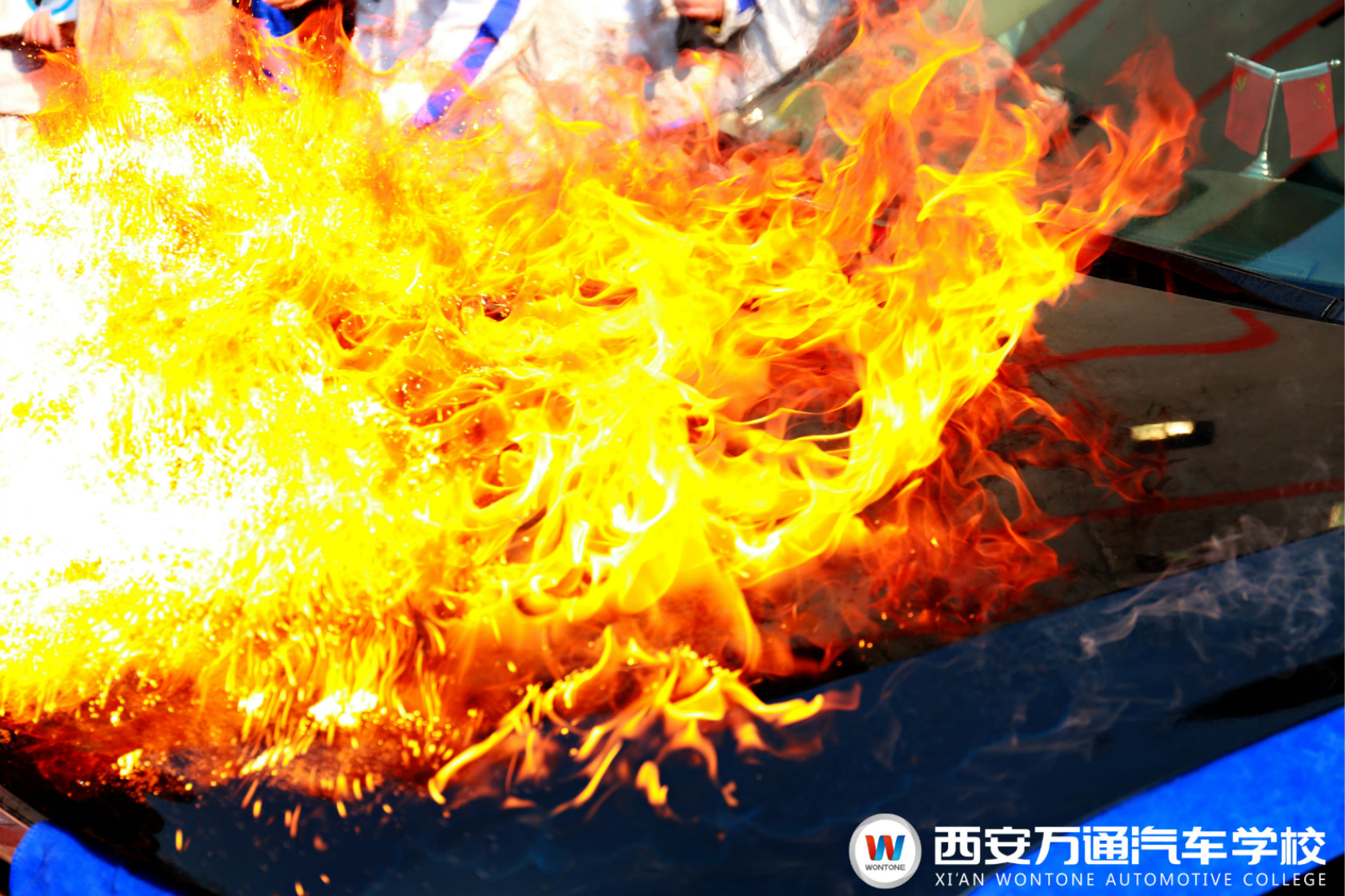 在新專業發布結束后,西安萬通還組織了一場新技術炫酷展示項目,所展示的新技術項目包括漆面鍍晶——大火燒車、輪輞彩印——水轉印、汽車改裝。