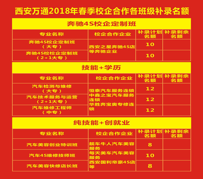 西安萬通2018年春校企定制班補錄情況如下:
