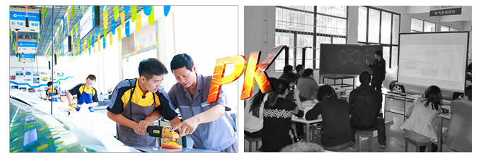 西安萬通:設備齊全 ,數量充足;引進現代化設備 ,與市場前沿接軌;學生70%的時間是拆裝實訓。