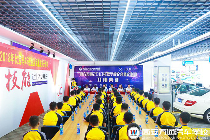 2018年7月27日,西安萬通汽車學校2+1大專1802寶馬4S校企定制班開班典禮正式開始。出席此次開班典禮的嘉賓主要有西安萬通校區主任、學生處主管、考試考證和學籍管理部門主管等校領導以及寶馬4S校企定制班班主任以及全體學生。