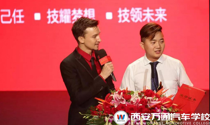 2012年畢業于萬通的汪棟杰同學,作為新華教育集團萬通汽車教育30周年優秀畢業學子代表驕傲地說:“特別感謝萬通,讓我知道自己努力的方向在哪里,知道未來我想要的生活是什么樣子的。今天我知道,我的努力母校一直都知道,今天甚至以我為榮,我要特別感謝母校。謝謝你萬通,我會繼續努力,讓你一直為我感到驕傲。”
