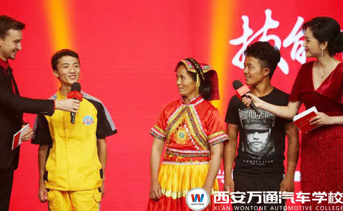 來自大涼山的達則取體同學的經歷感動了現場所有人,達則取體和媽媽、哥哥一同登上了新華教育集團萬通汽車教育30周年慶典的舞臺,他激動地說:“我想對學校說,謝謝。是萬通讓我可以依靠自己的專業技術獲得滿意的工作、過想要的生活。我感謝學校,感謝萬通。”