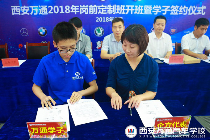8月16日,西安萬通完成了與上述企業籌備“企業崗前定制班”的相關事宜,并于當天成功舉辦2018年秋企業崗前定制班開班暨企業學子簽約儀式。