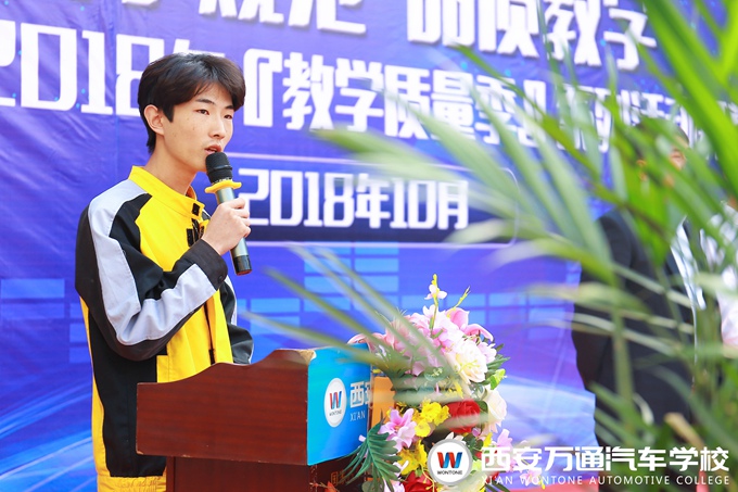 教師代表張老師發言,講到教學質量是學校的生命,是教育的生命,作為教師應將學習充電當作常態,積極主動的汲取先進的教學思想與教學方法。而且,還要多去了解學生及其需求,幫助學生培養自覺學習的習慣,最后張老師代表全體教師作出表態,在學校各領導的共同努力下,全體教師一定會銳意進取,不斷提升,為培養出更多德技兼備的高素質汽車人才而不懈努力。