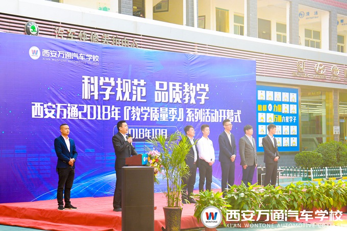 為進一步完善教學管理,狠抓教學質量,深化教學改革,提升教學品質,創建優良的教風、學風和校風,2018年10月11日上午,西安萬通汽車學校隆重舉行了西安萬通2018年教學質量季啟動儀式。創就業指導中心主任、愛車坊汽車連鎖創始人梁汝斌總經理、督察處主任、教務處主管、學生處主管等校領導出席此次教學質量季啟動儀式。